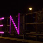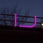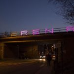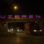 Vanuit de gemeente Neerpelt en “De Nieuwe Opdrachtgevers” kwam de vraag om voor de spoorbrug over de drukke doorgaande weg Neerpelt – Hamont / Achel iets te bedenken voor het binnenkomend verkeer. De brug als poortfunctie. Het spoor is het trace van “De IJzeren Rijn”, de verbinding van Antwerpen met het Ruhrgebied. De trein rijdt echter nu niet verder dan Budel. Deze tot de verbeelding sprekende naam – De IJzeren Rijn – is in grote witte letters met felroze LED op de brug geplaatst. De tekst wordt uitgevoerd als een “treinprogramma”.